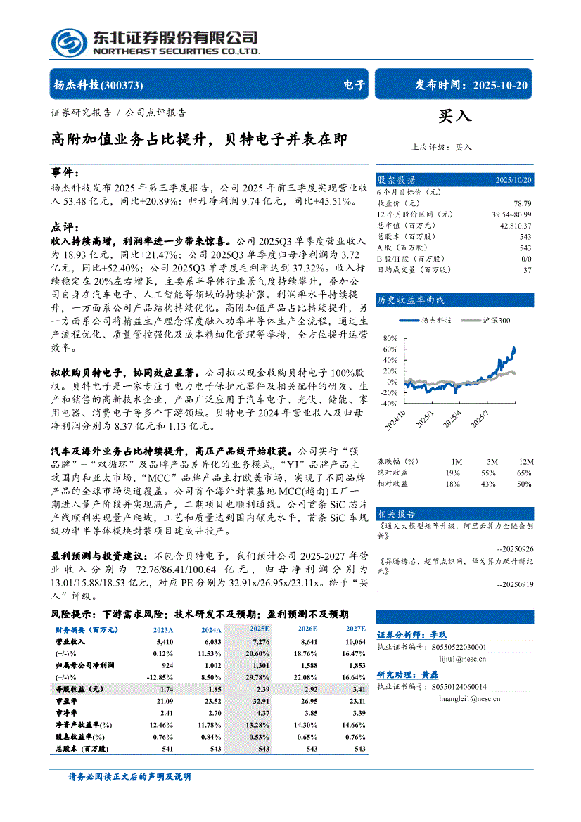 扬杰科技:东北证券-扬杰科技-300373-高附加值业务占比提升,贝特电子并表在即-251020