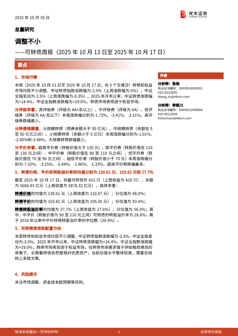 光大证券-可转债周报(2025年10月9日至2025年10月10日):本周先涨后跌-251011