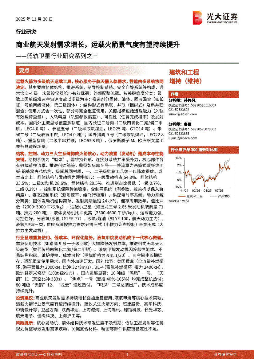 建筑和工程行业:光大证券-低轨卫星行业研究系列之三:商业航天发射需求增长,运载火箭景气度有望持续提升-251126
