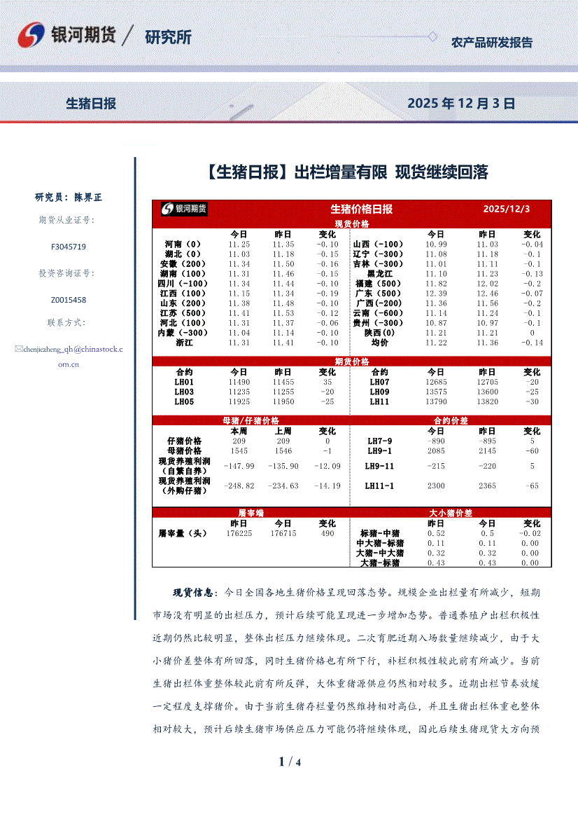 银河期货-【生猪日报】出栏增量有限,现货继续回落-251203