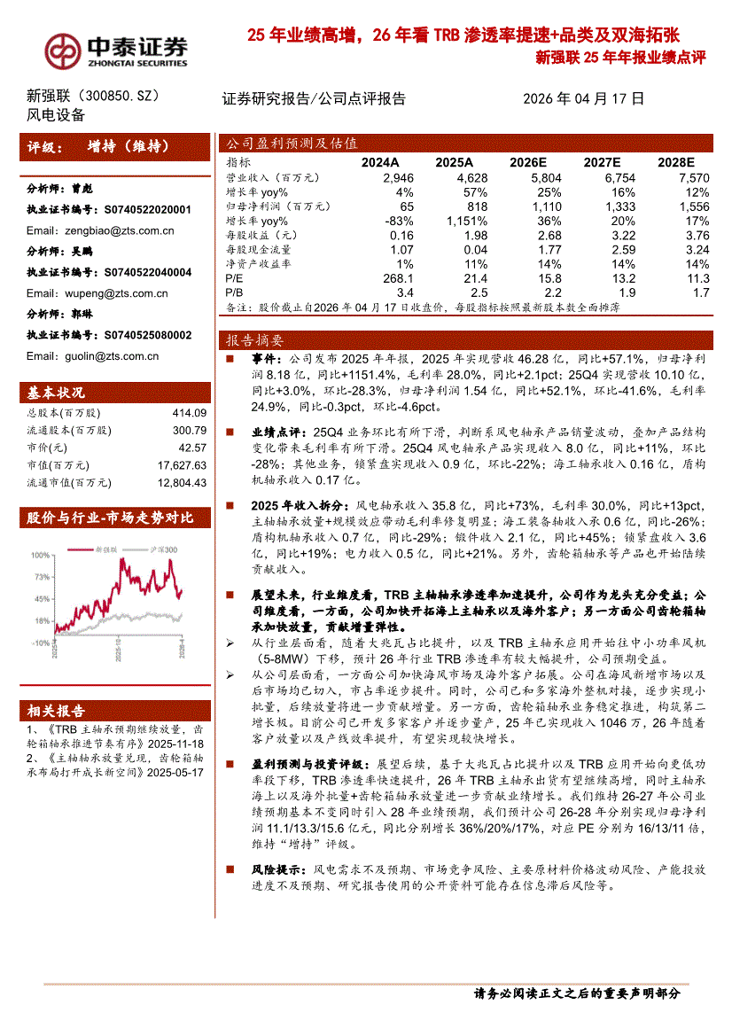 新强联:中泰证券-新强联-300850-25年年报业绩点评:25年业绩高增,26年看TRB渗透率提速+品类及双海拓张-260417