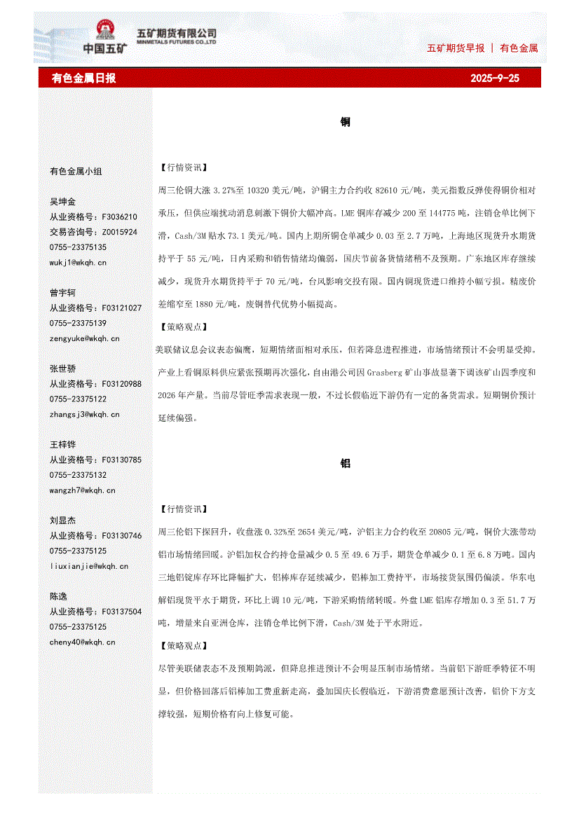 五矿期货-铜周报:中美经贸谈判变化左右市场情绪-251018