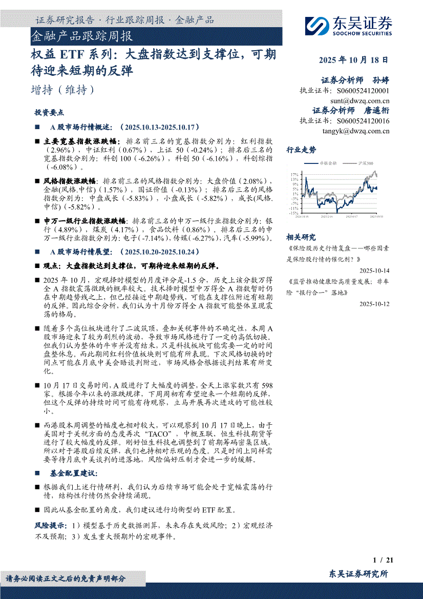 金融行业:东吴证券-金融行业产品跟踪周报:权益ETF系列,大盘指数达到支撑位,可期待迎来短期的反弹-251018