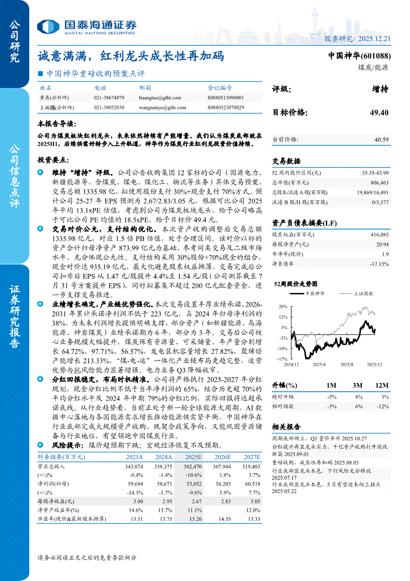 国泰海通证券-中国神华-601088-重磅收购预案点评:诚意满满,红利龙头成长性再加码-251221