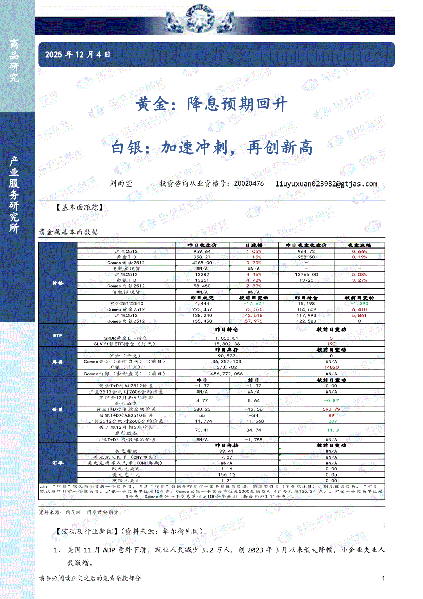 国泰君安期货-黄金:降息预期回升,白银,加速冲刺,再创新高-251204
