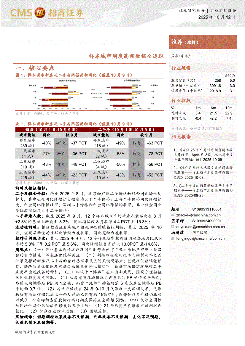 房地产行业:招商证券-房地产行业样本城市周度高频数据全追踪:二手房日均网签面积高于2020年同期水平-251012