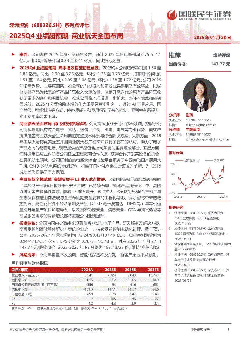经纬恒润:国联民生证券-经纬恒润-688326-系列点评七:2025Q4业绩超预期,商业航天全面布局-260128