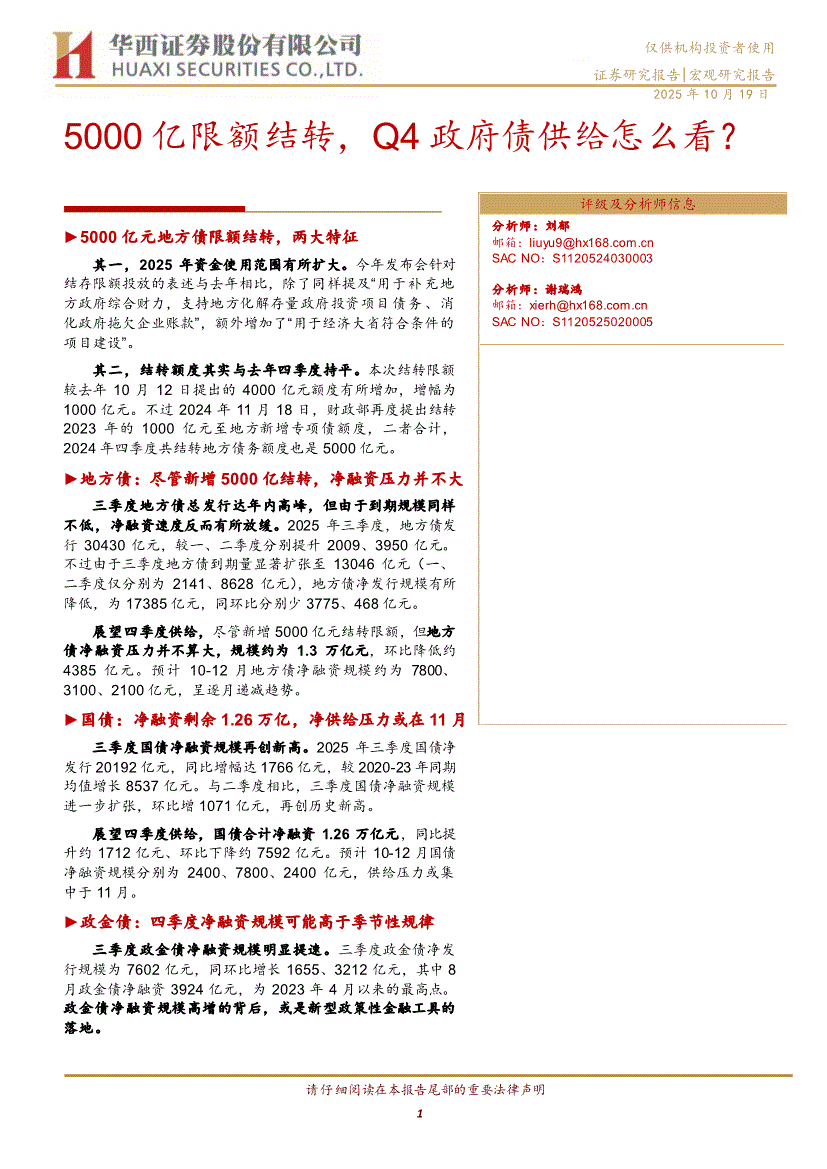 华西证券-5000亿限额结转,Q4政府债供给怎么看?-251019