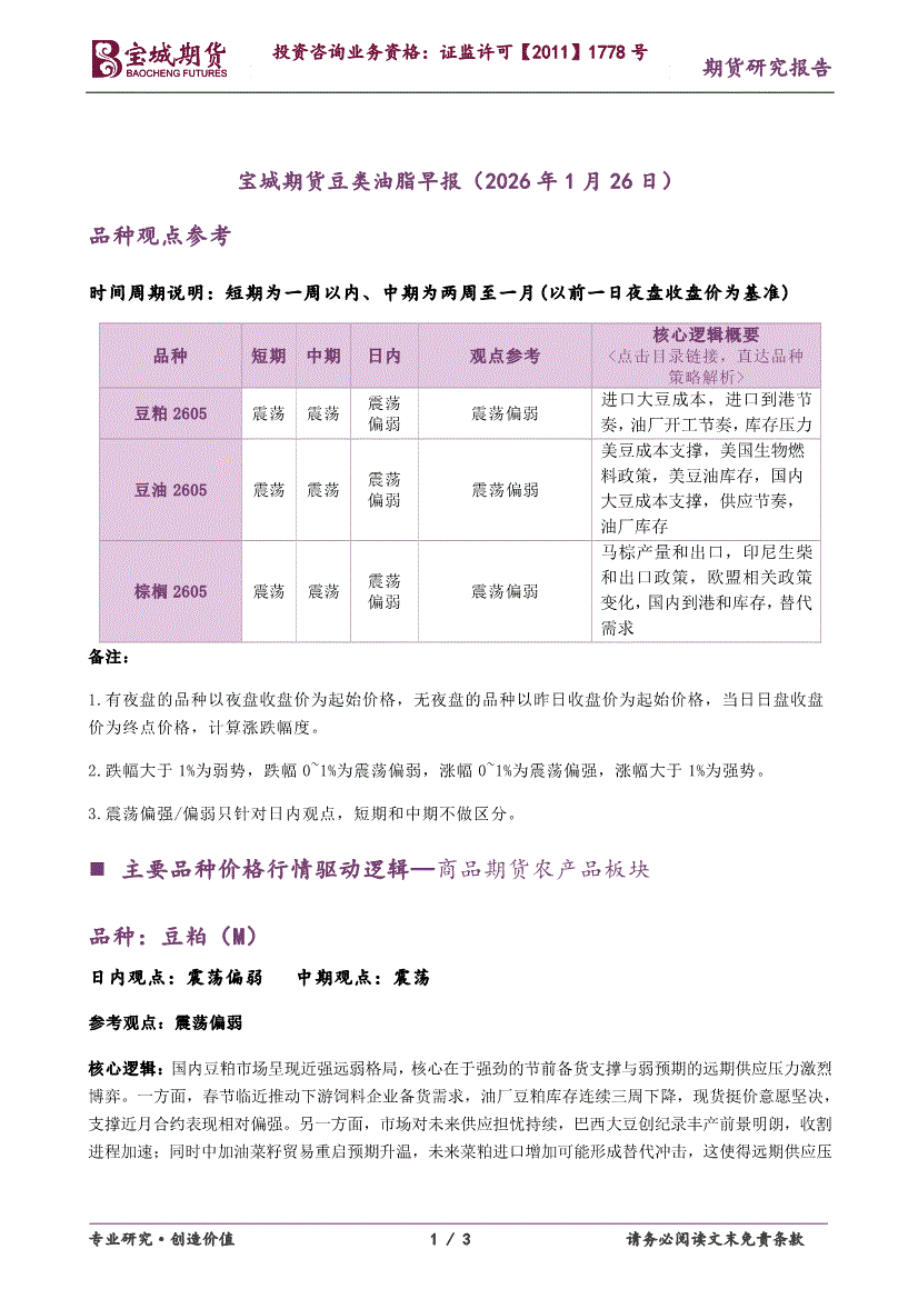 宝城期货-豆类油脂早报-260126