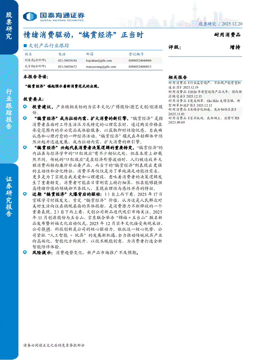 耐用消费品行业:国泰海通证券-文创产品行业跟踪:情绪消费驱动,“犒赏经济”正当时-251220