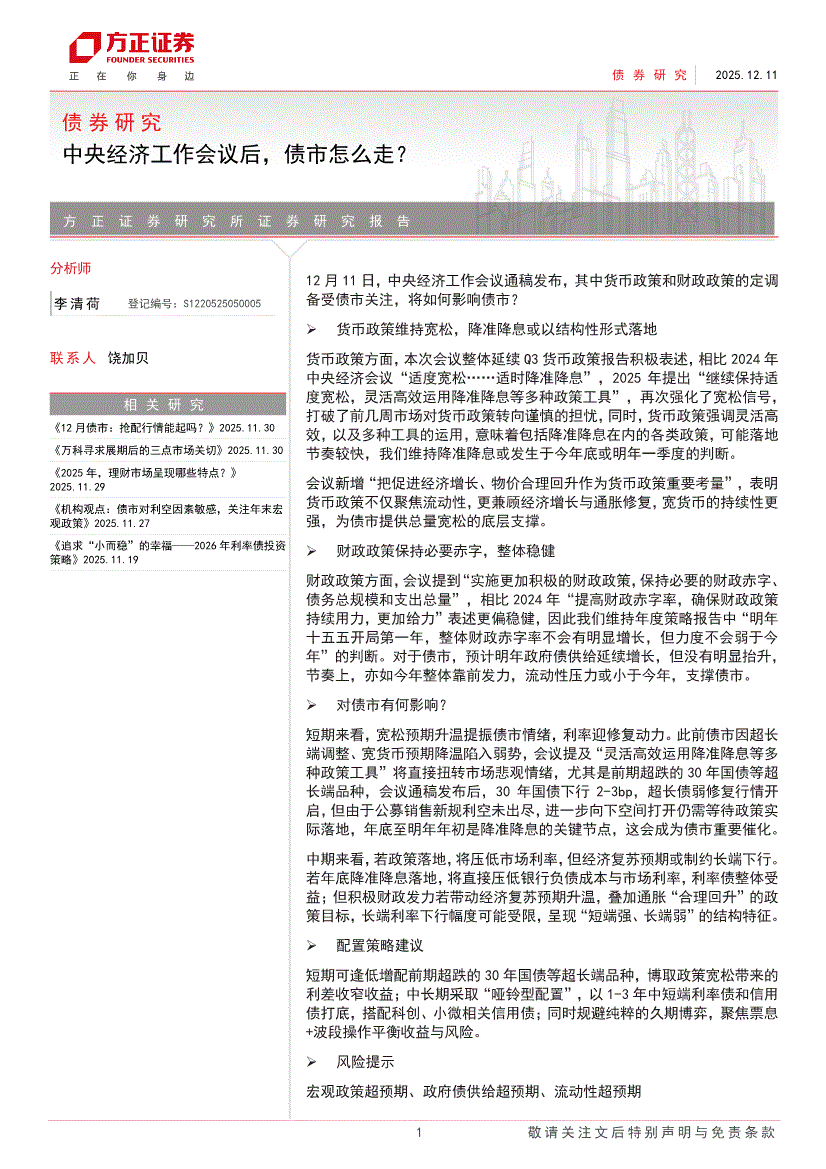 方正证券-债券研究:中央经济工作会议后,债市怎么走?-251211