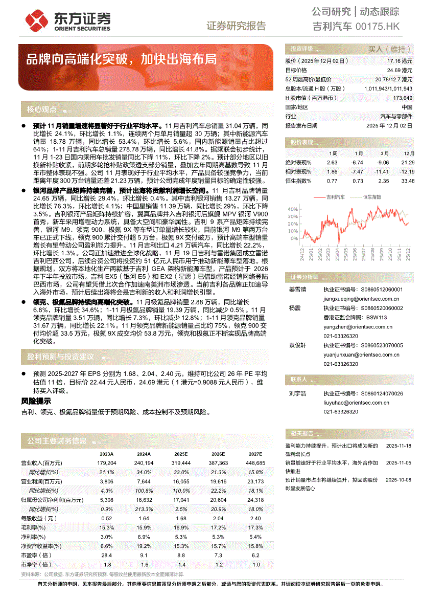 吉利汽车:东方证券-吉利汽车-0175.HK-品牌向高端化突破,加快出海布局-251202