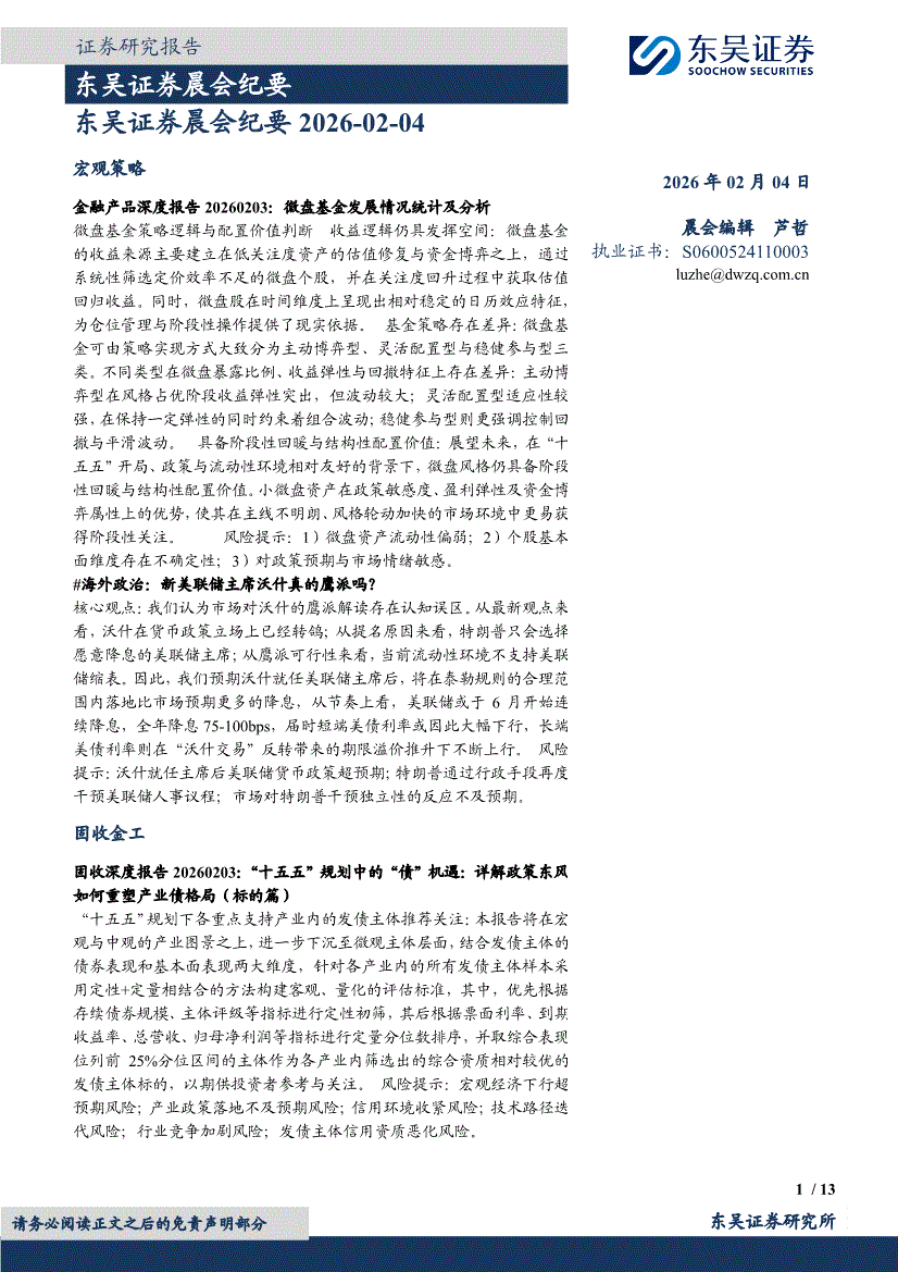 东吴证券-晨会纪要-260204