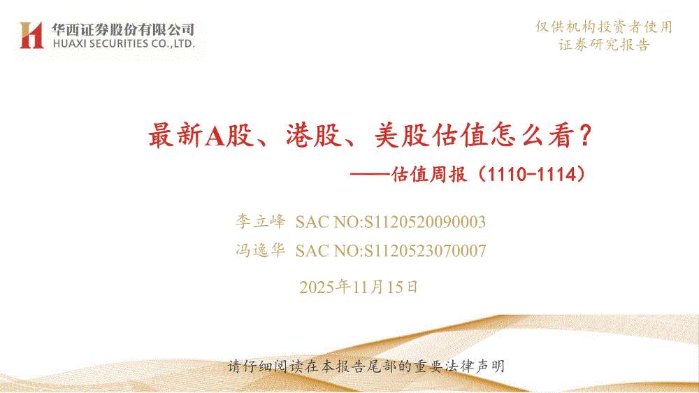 华西证券-估值周报:最新A股、港股、美股估值怎么看?-251115