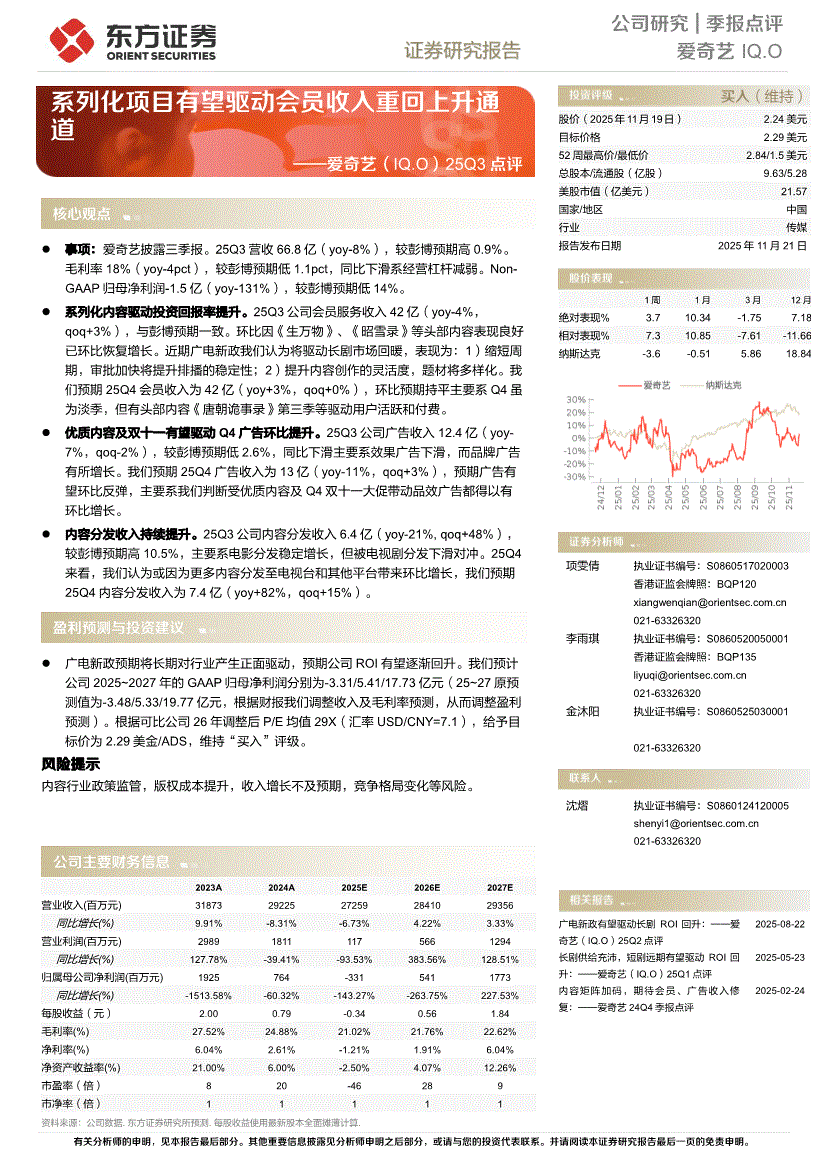 爱奇艺:东方证券-爱奇艺-IQ.US-25Q3点评:系列化项目有望驱动会员收入重回上升通道-251121