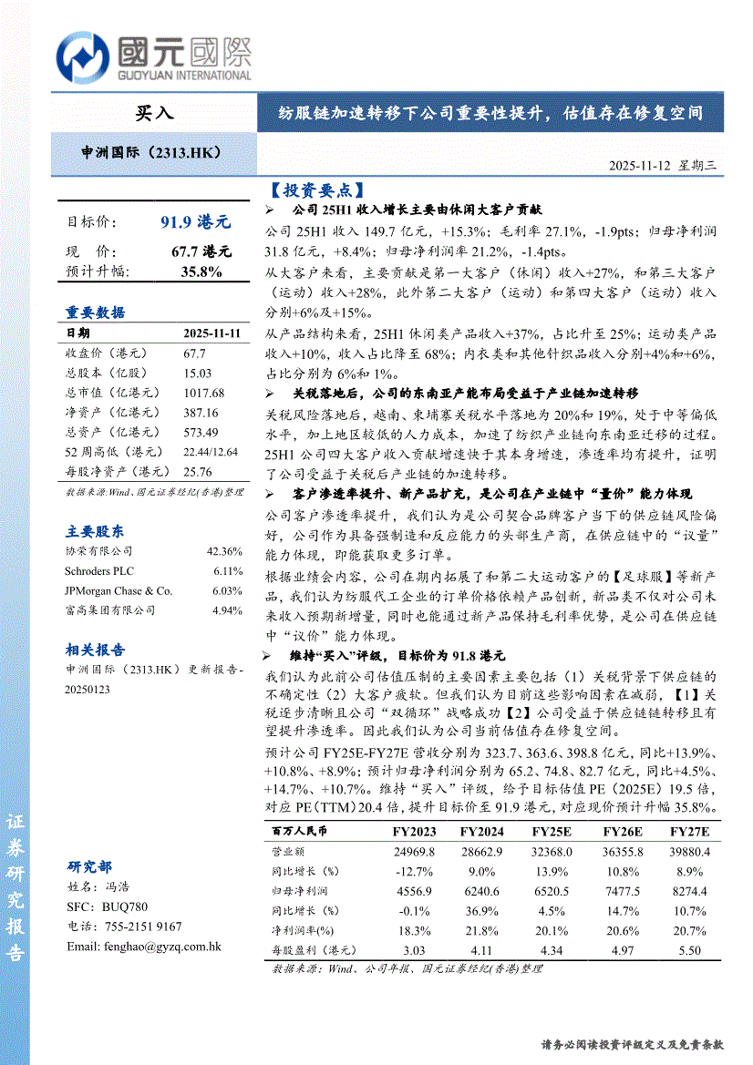 申洲国际:国元国际-申洲国际-2313.HK-纺服链加速转移下公司重要性提升,估值存在修复空间-251112