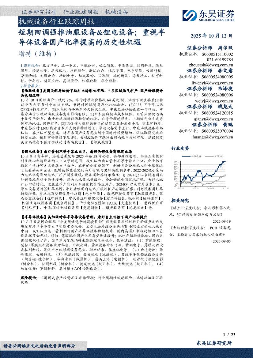 机械设备行业:东吴证券-机械设备行业跟踪周报:短期回调强推油服设备&锂电设备;重视半导体设备国产化率提高的历史性机遇-251012
