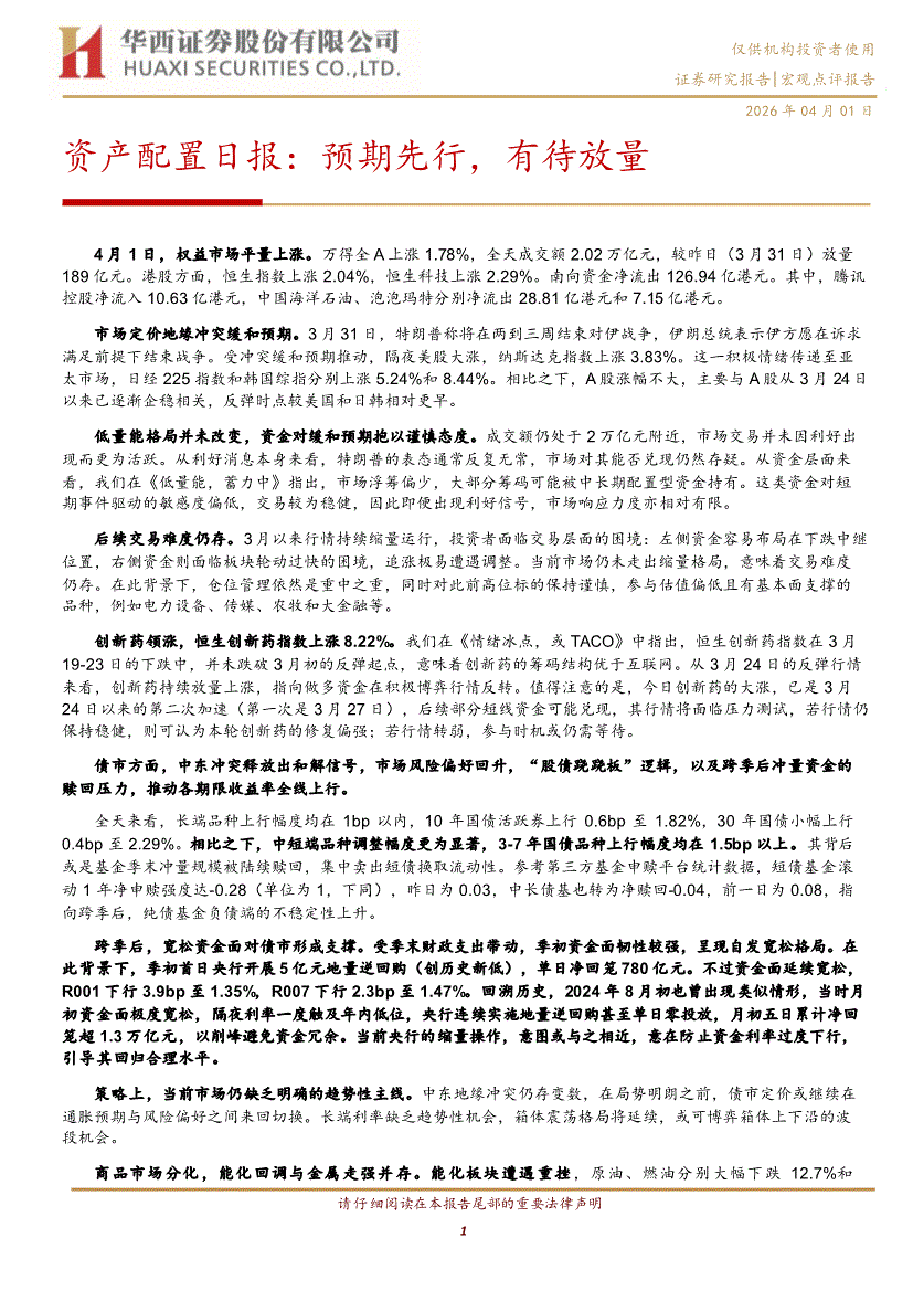 华西证券-资产配置日报:预期先行,有待放量-260401