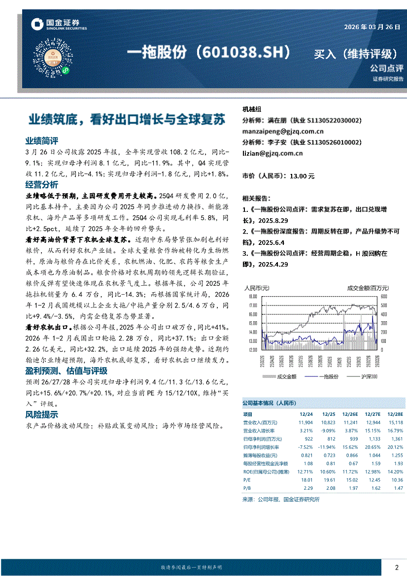 国金证券-一拖股份-601038-业绩筑底,看好出口增长与全球复苏-260326