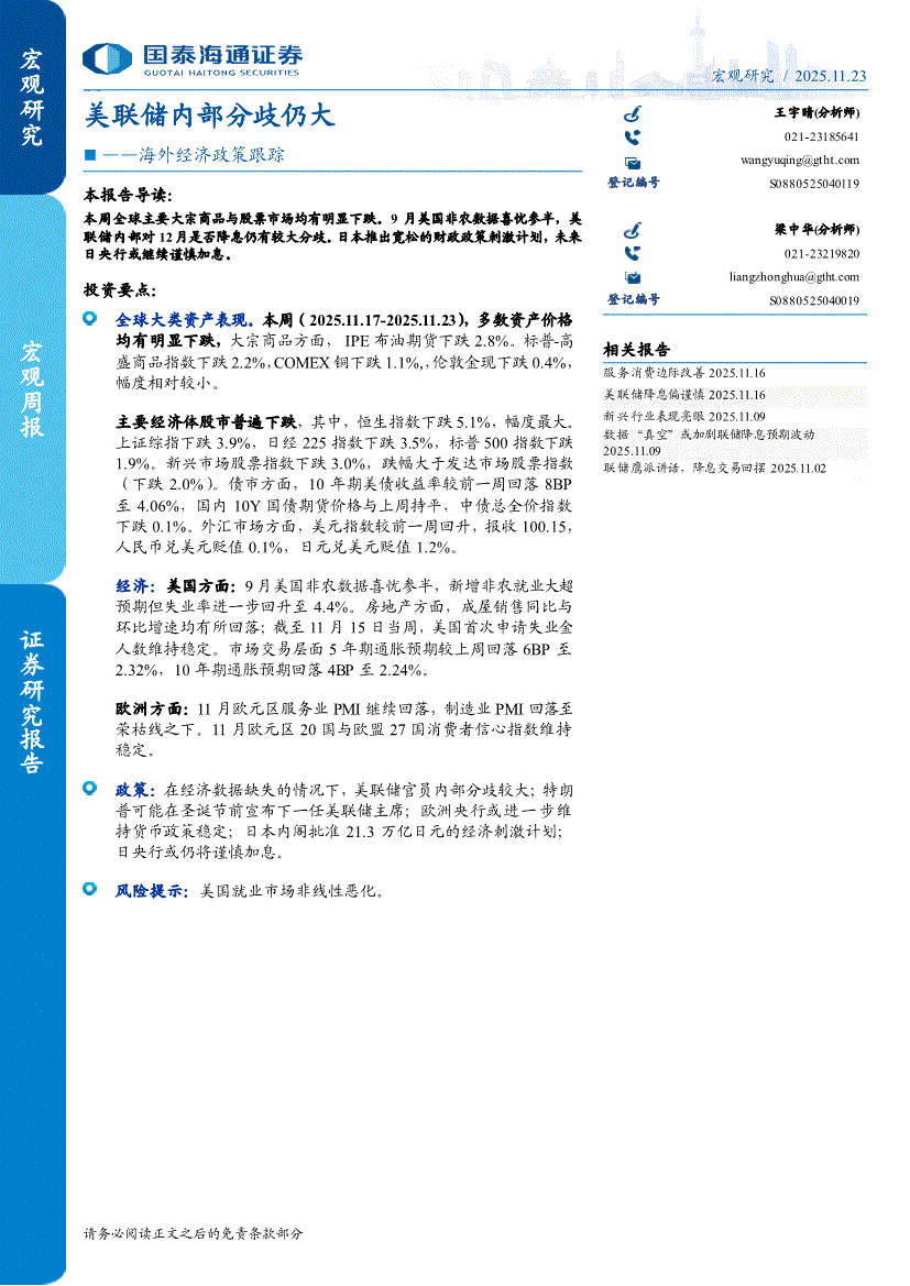 国泰海通证券-海外经济政策跟踪:美联储内部分歧仍大-251123