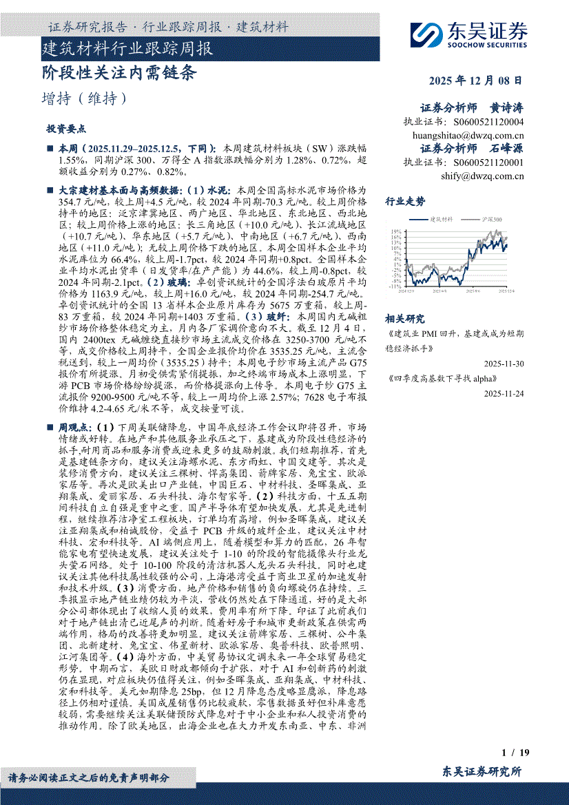 建筑材料行业:东吴证券-建筑材料行业跟踪周报:阶段性关注内需链条-251208