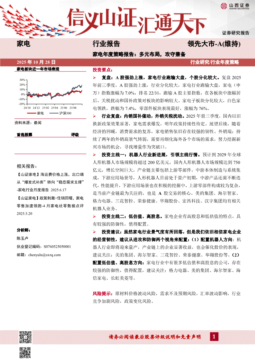 家电行业:山西证券-家电行业年度策略报告:多元布局,攻守兼备-251028