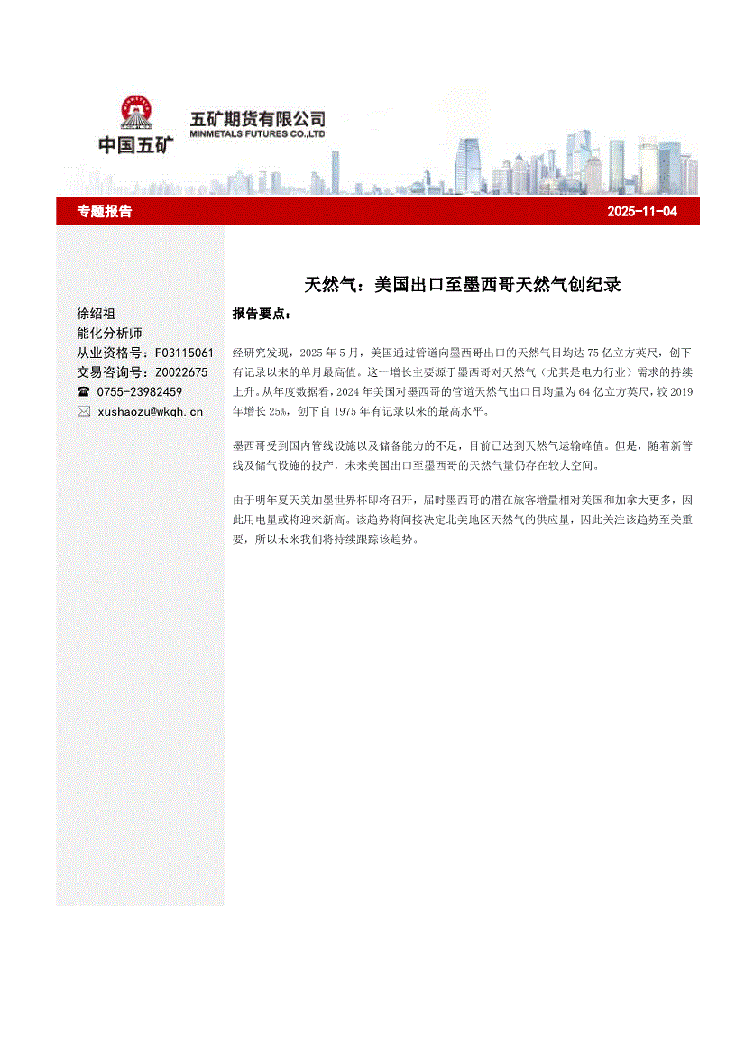 五矿期货-天然气专题报告:美国出口至墨西哥天然气创纪录-251104