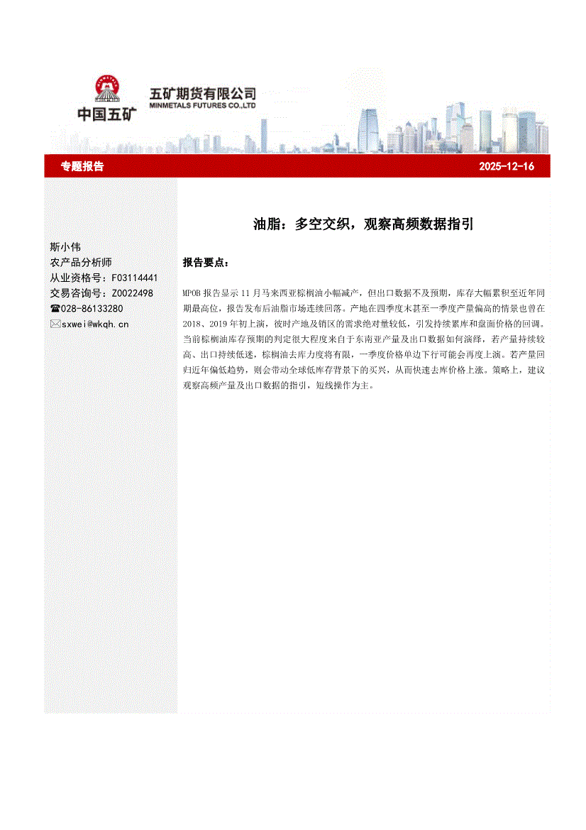 五矿期货-油脂:多空交织,观察高频数据指引-251216