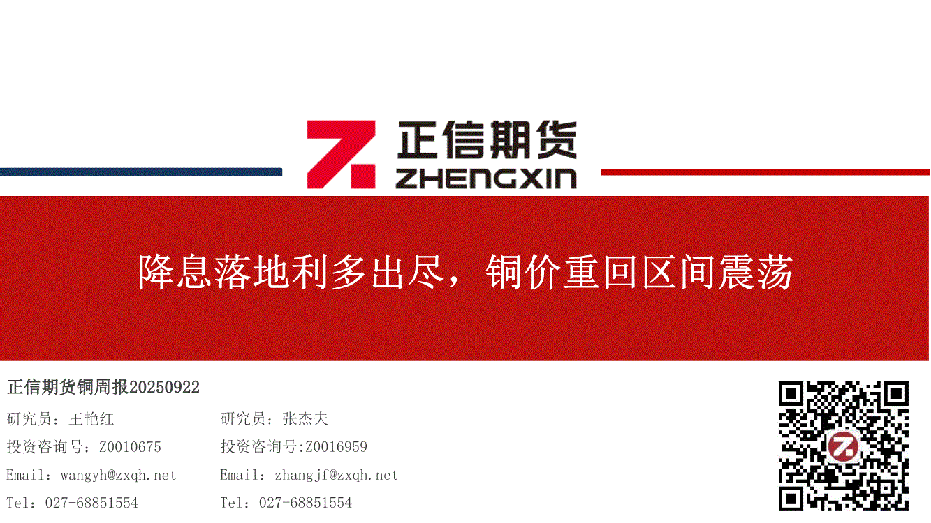 正信期货-铜周报:降息落地利多出尽,铜价重回区间震荡-250922