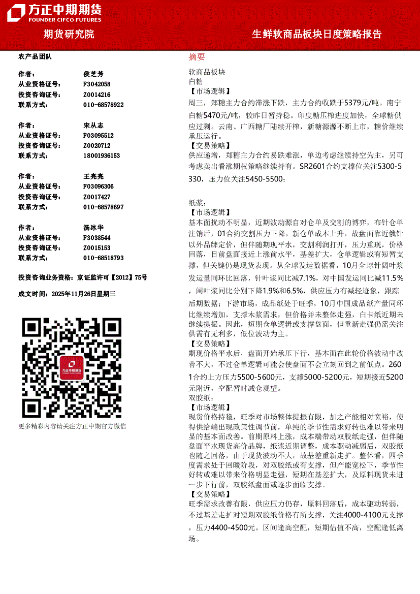 方正中期期货-生鲜软商品板块日度策略报告-251126