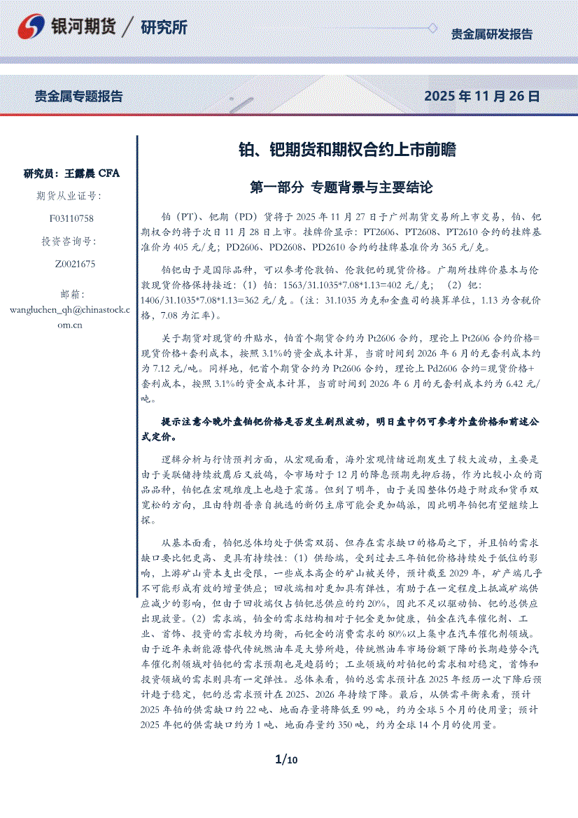 银河期货-贵金属专题报告:铂、钯期货和期权合约上市前瞻-251126