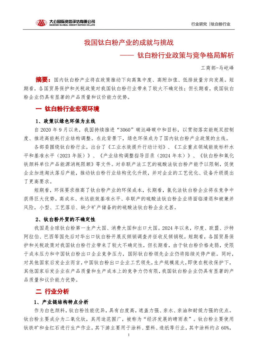 钛白粉行业:大公国际-钛白粉行业政策与竞争格局解析:我国钛白粉产业的成就与挑战-250815
