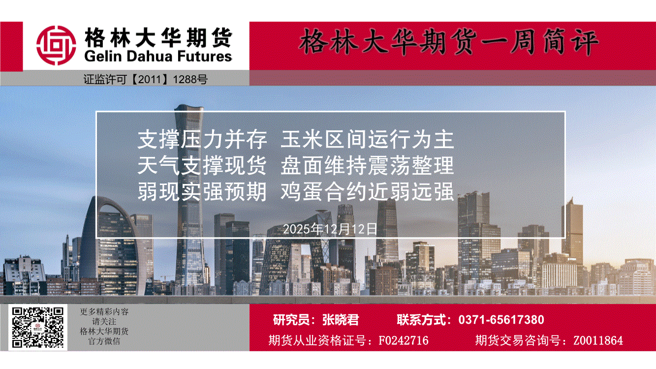 格林大华期货-一周简评:支撑压力并存,玉米区间运行为主,天气支撑现货,盘面维持震荡整理,弱现实强预期,鸡蛋合约近弱远-251212