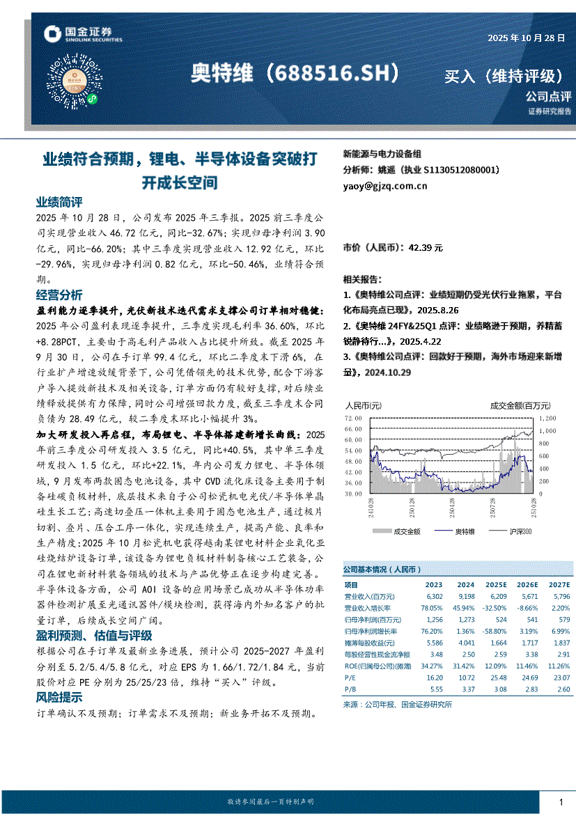 奥特维:国金证券-奥特维-688516-业绩符合预期,锂电、半导体设备突破打开成长空间-251028