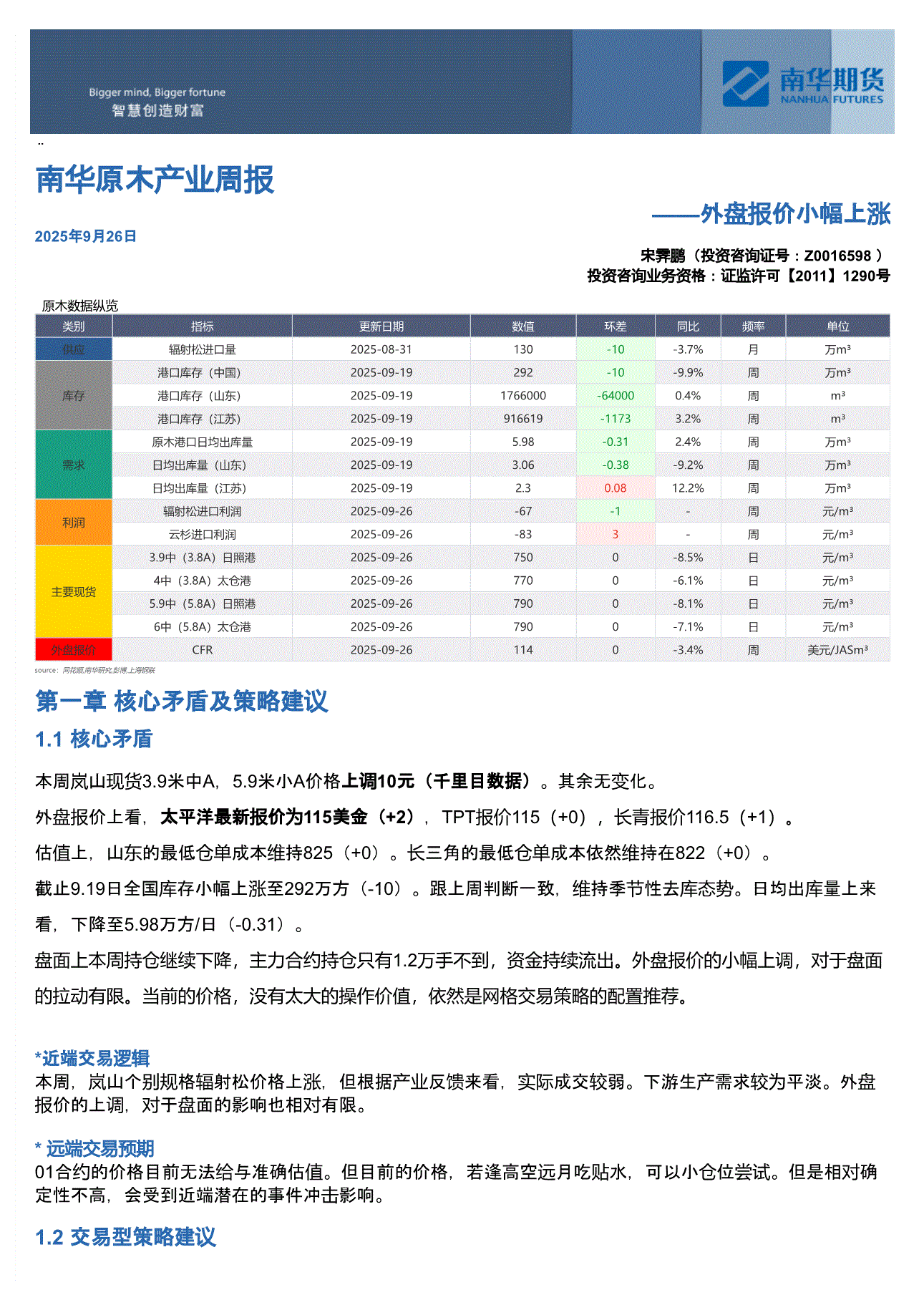 南华期货-原木产业周报:外盘报价小幅上涨-250926