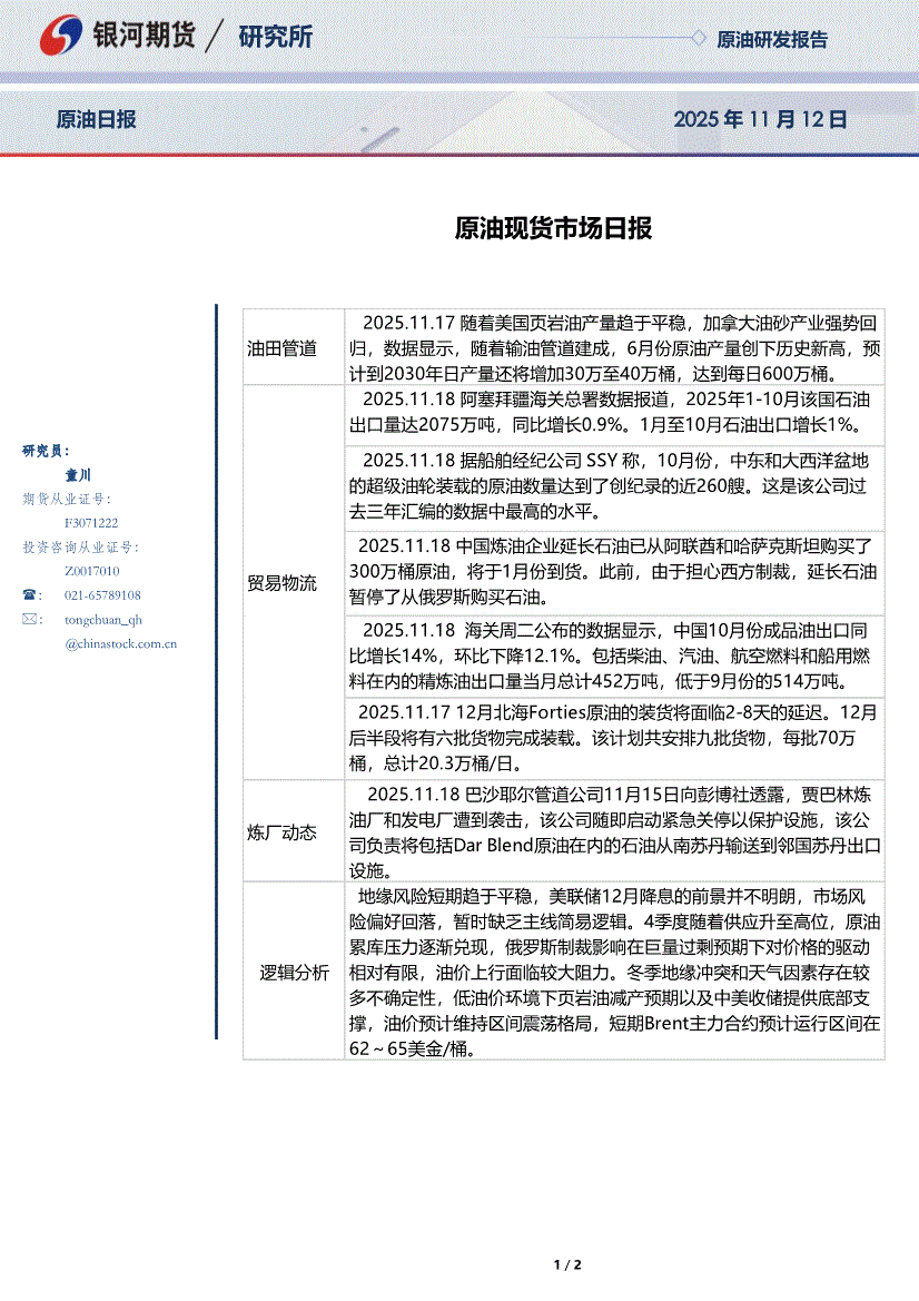 银河期货-原油12月报:过剩压力显著,地缘风险尚存-251127