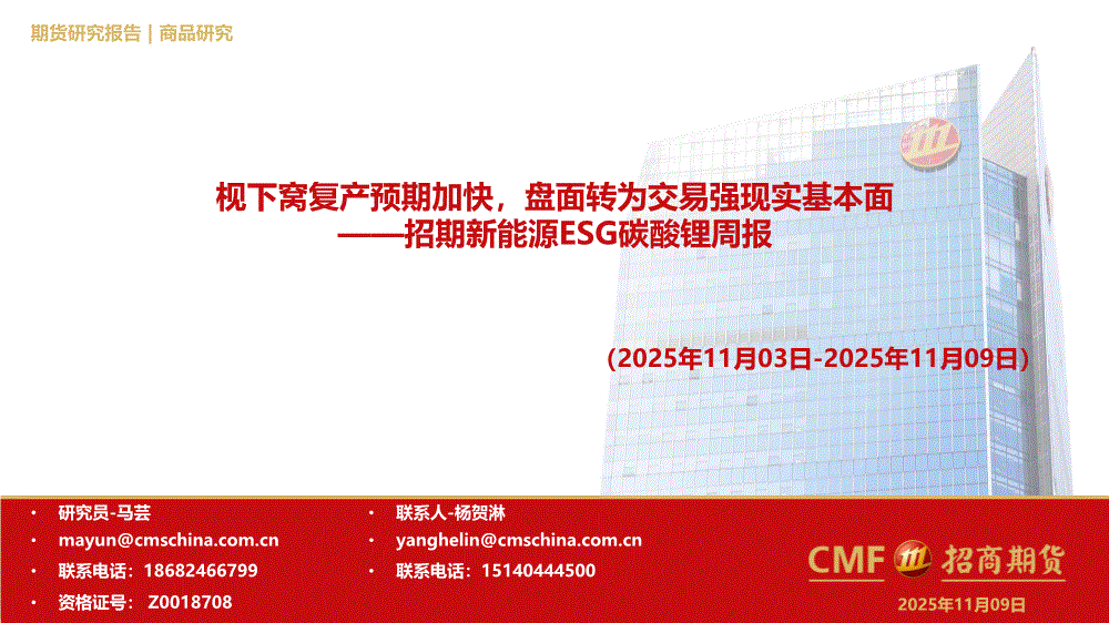 招商期货-招期新能源ESG碳酸锂周报:枧下窝复产预期加快,盘面转为交易强现实基本面-251109