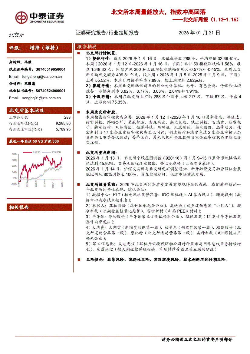 中泰证券-北交所周报:北交所本周量能放大,指数冲高回落-260121