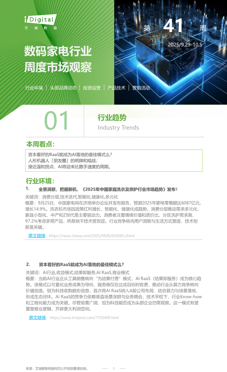 数码家电行业:艾瑞咨询-数码家电行业周度市场观察:第41周-251005