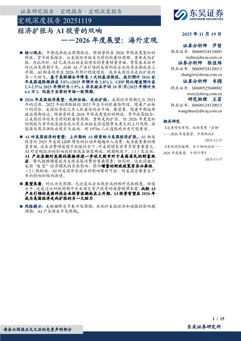 东吴证券-宏观深度报告:经济扩张与AI投资的双响——2026年度展望,海外宏观-251119
