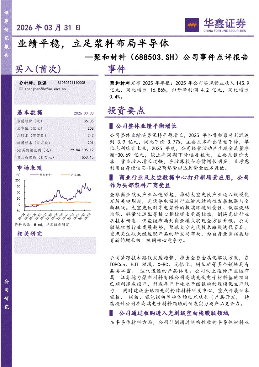 聚和材料:华鑫证券-聚和材料-688503-公司事件点评报告:业绩平稳,立足浆料布局半导体-260331