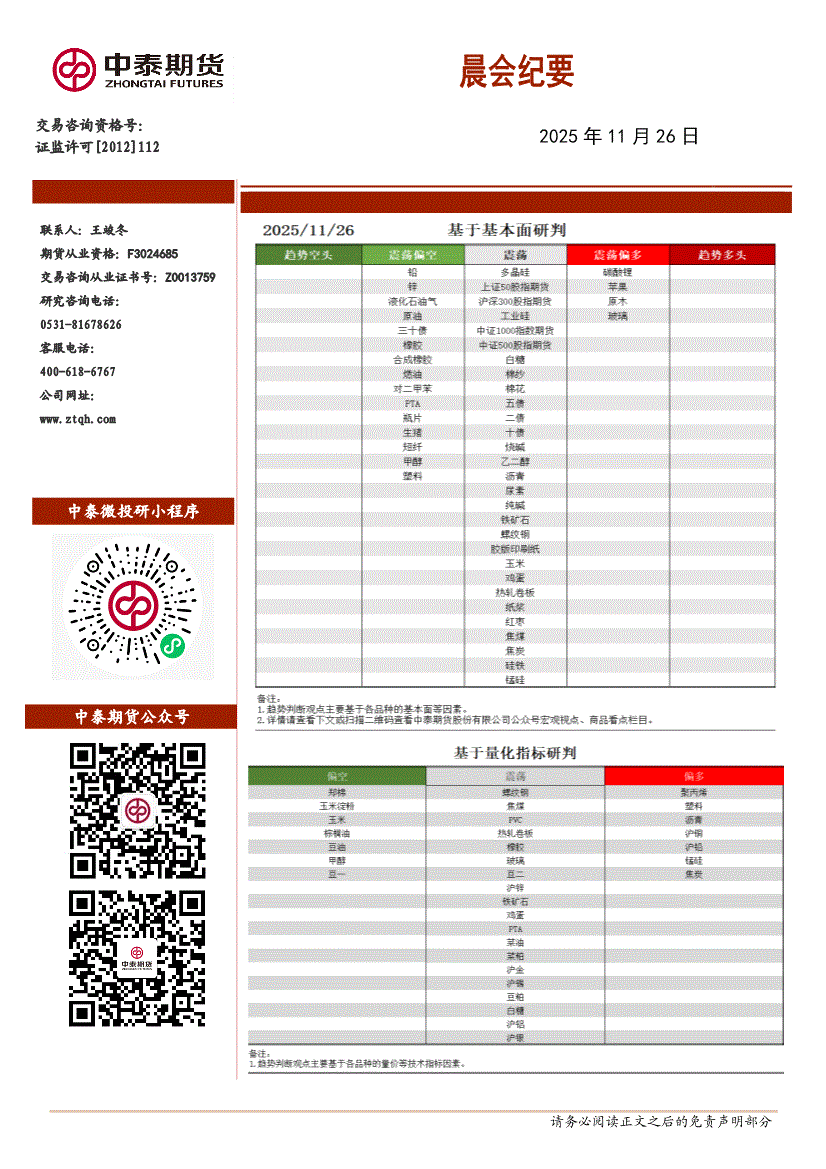 中泰期货-晨会纪要-251126