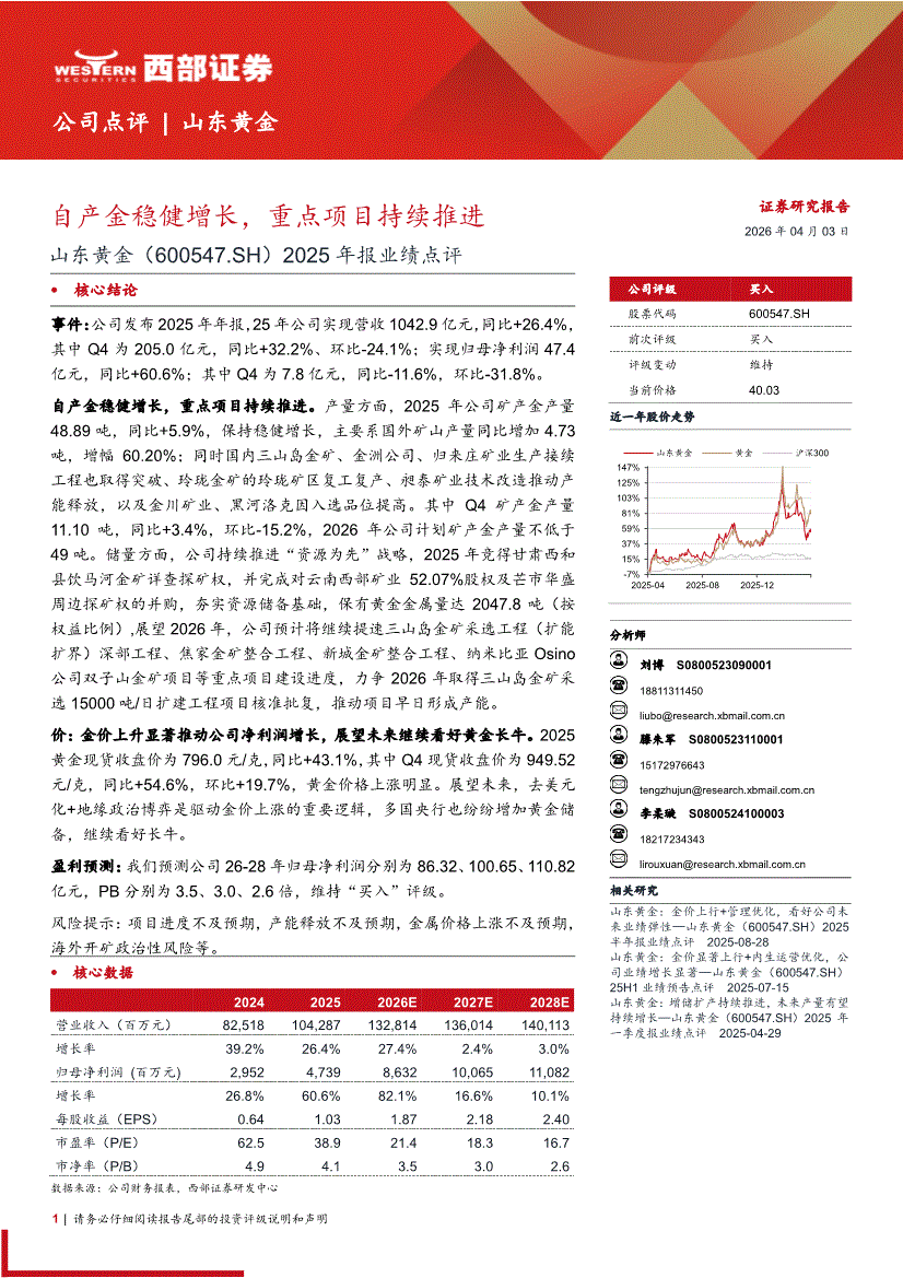 山东黄金:西部证券-山东黄金-600547-2025年报业绩点评:自产金稳健增长,重点项目持续推进-260403