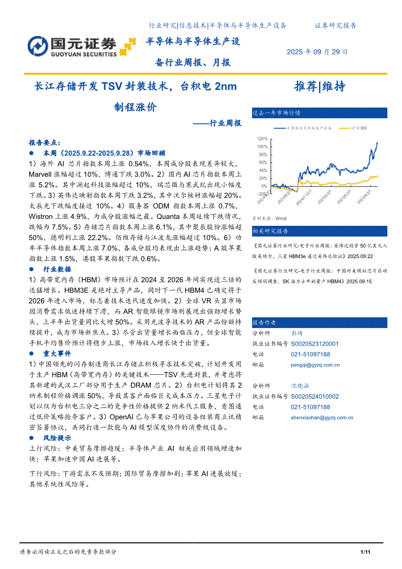 半导体与半导体生产设备行业:国元证券-半导体与半导体生产设备行业周报:长江存储开发TSV封装技术,台积电2nm制程涨价-250929