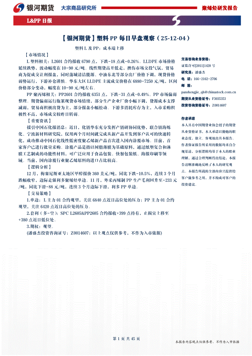 银河期货-塑料PP每日早盘观察-251203