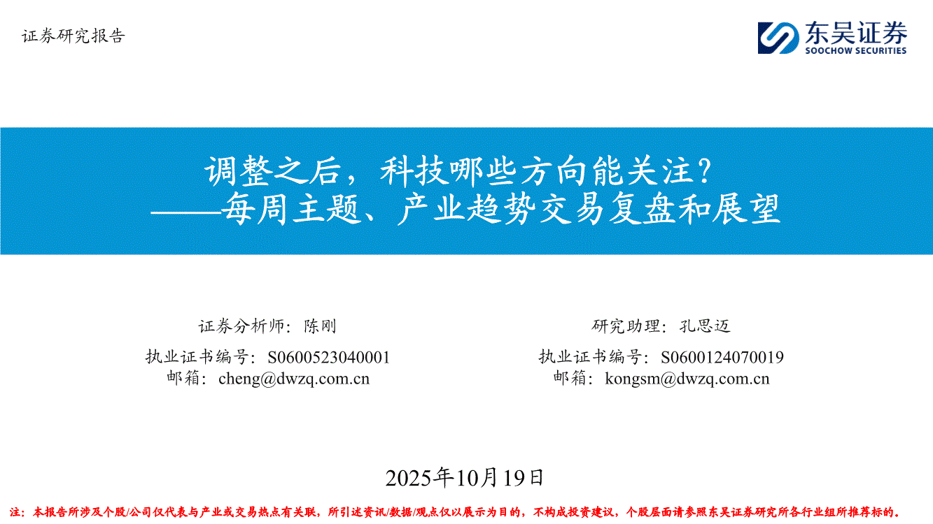 东吴证券-每周主题、产业趋势交易复盘和展望:调整之后,科技哪些方向能关注?-251019