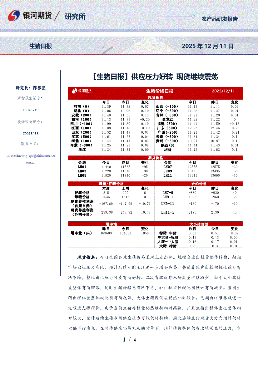 银河期货-【生猪日报】供应压力好转,现货继续震荡-251211