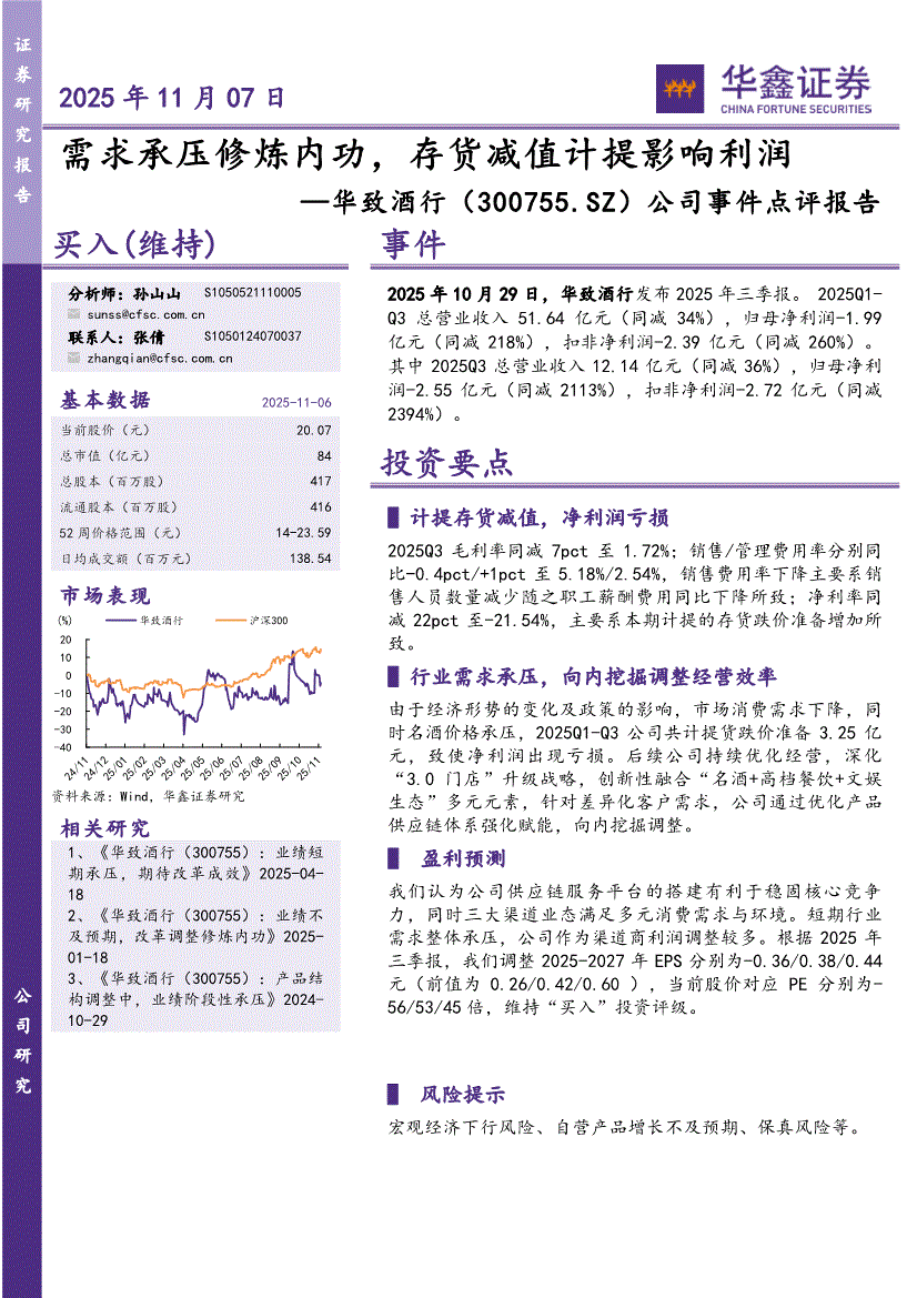 华致酒行:华鑫证券-华致酒行-300755-公司事件点评报告:需求承压修炼内功,存货减值计提影响利润-251107