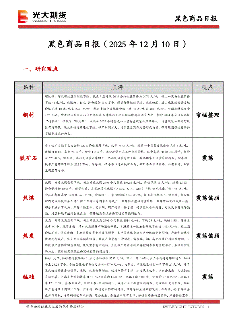 光大期货-光期黑色:铁矿石基差及价差监测日报-251211