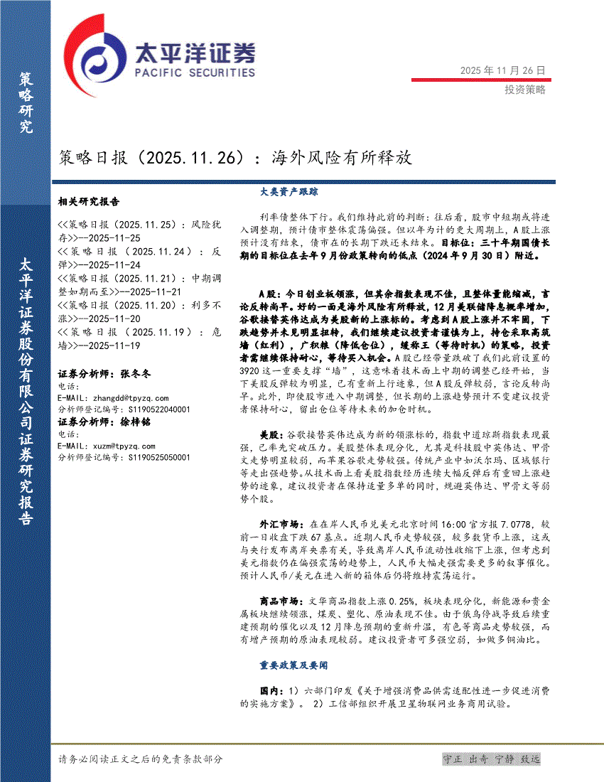 太平洋证券-策略日报:海外风险有所释放-251126